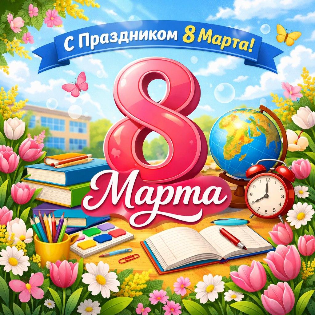 🌷Уважаемые учителя, мамы, бабушки и ученицы нашей школы!🌸Поздравляем вас с Международным женским днем! 🌷Желаем, чтобы этот весенний праздник принес вам радость, улыбки и отличное настроение. 🌷Пусть ваше здоровье будет крепким, счастье — безграничным, любовь — взаимной, а благополучие —...